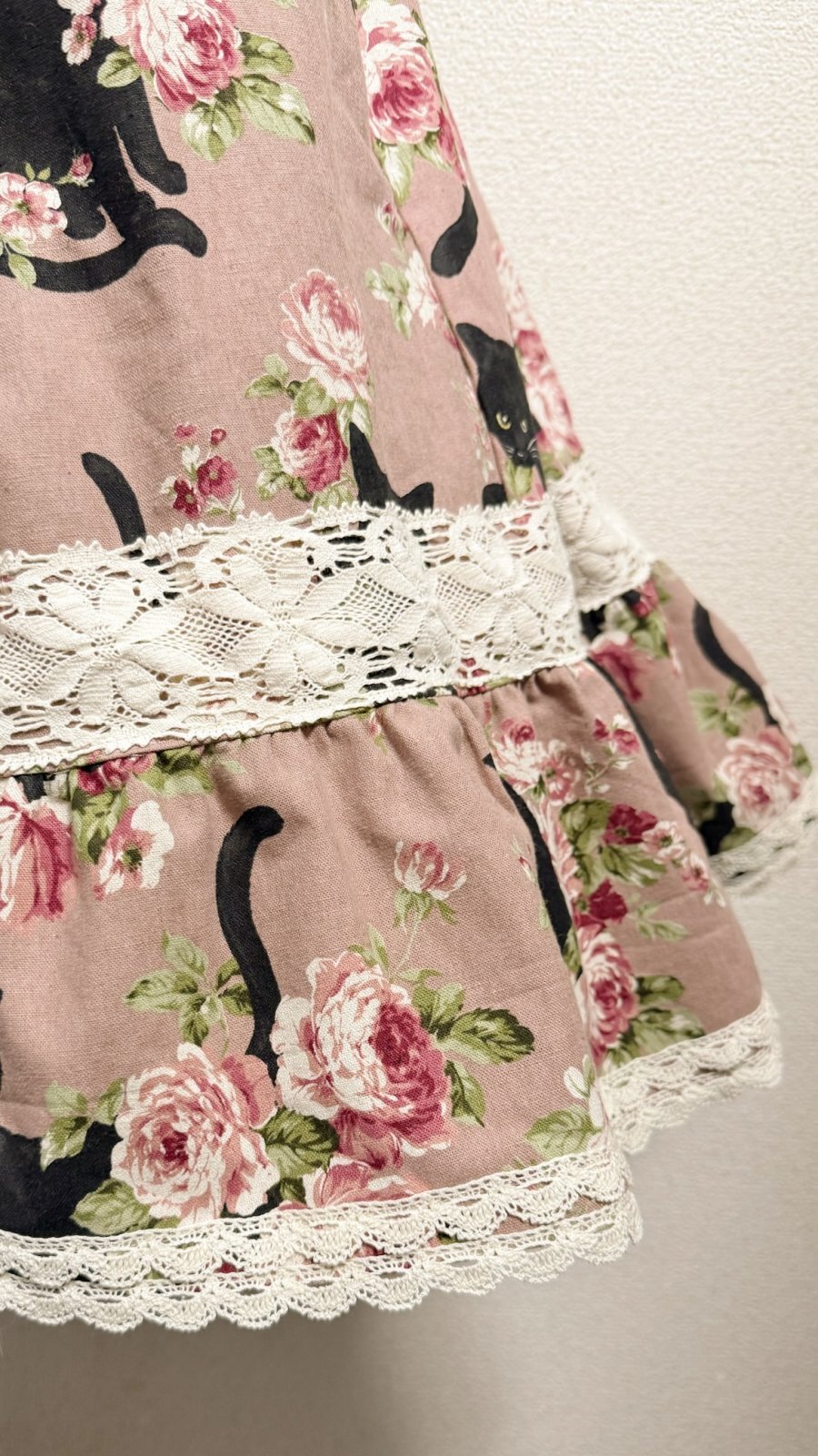 ハンドメイドギャザースカート【猫柄ピンク色・59cm丈】 [戻る]