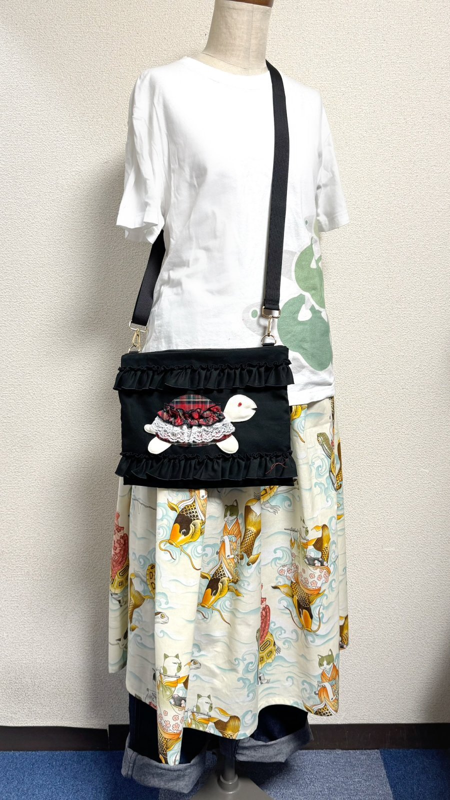 お出かけカメちゃん サコッシュ (黒×赤チェックカメちゃん)