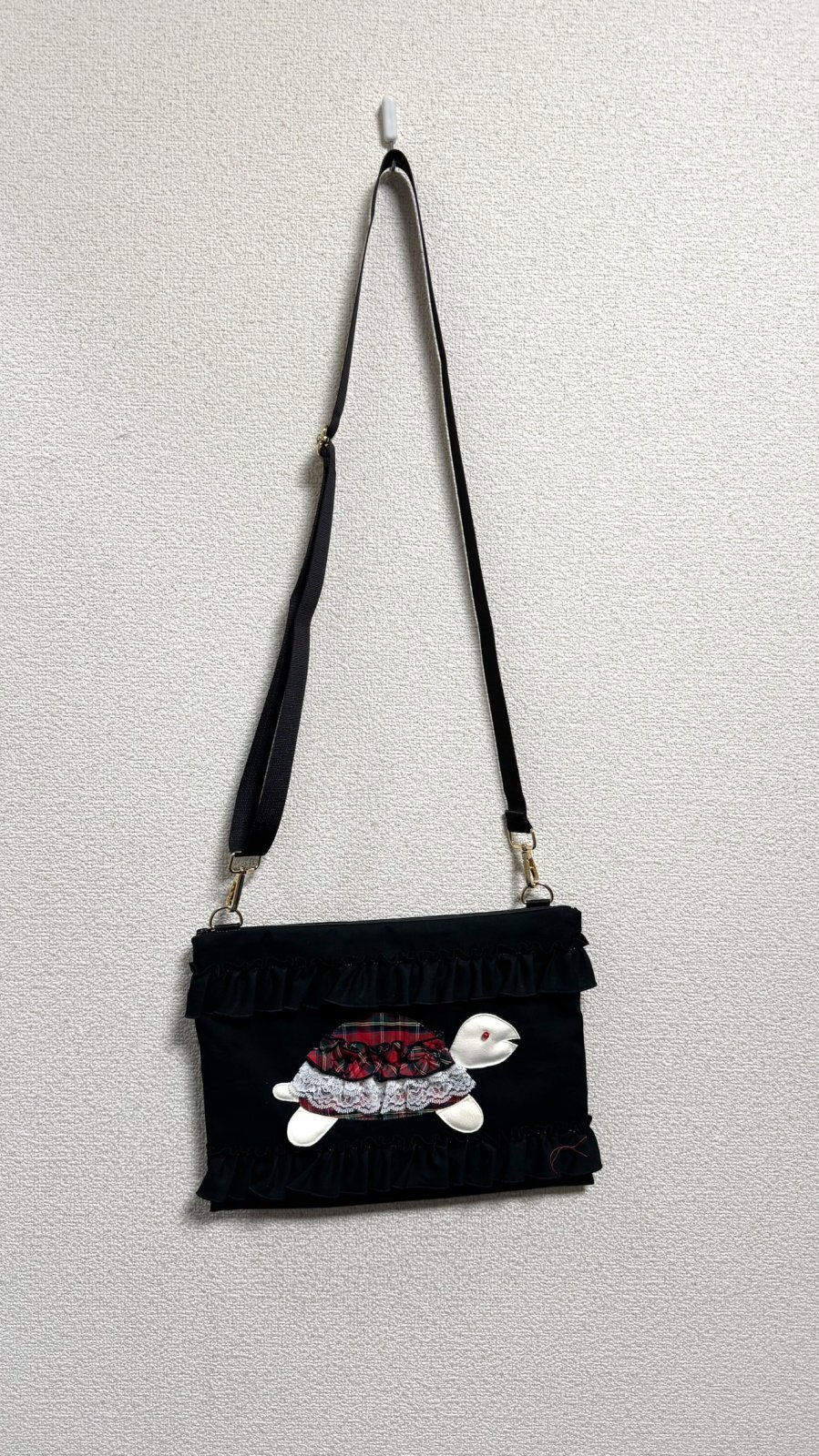お出かけカメちゃん サコッシュ (黒×赤チェックカメちゃん)