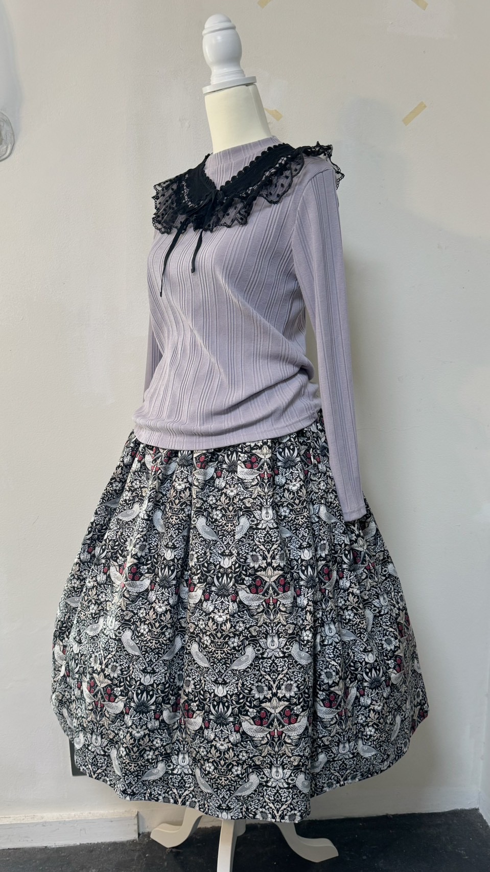 パニエを入れるとふんわりボリュームが出る形ですが、1枚でさらっと履いてもOK!