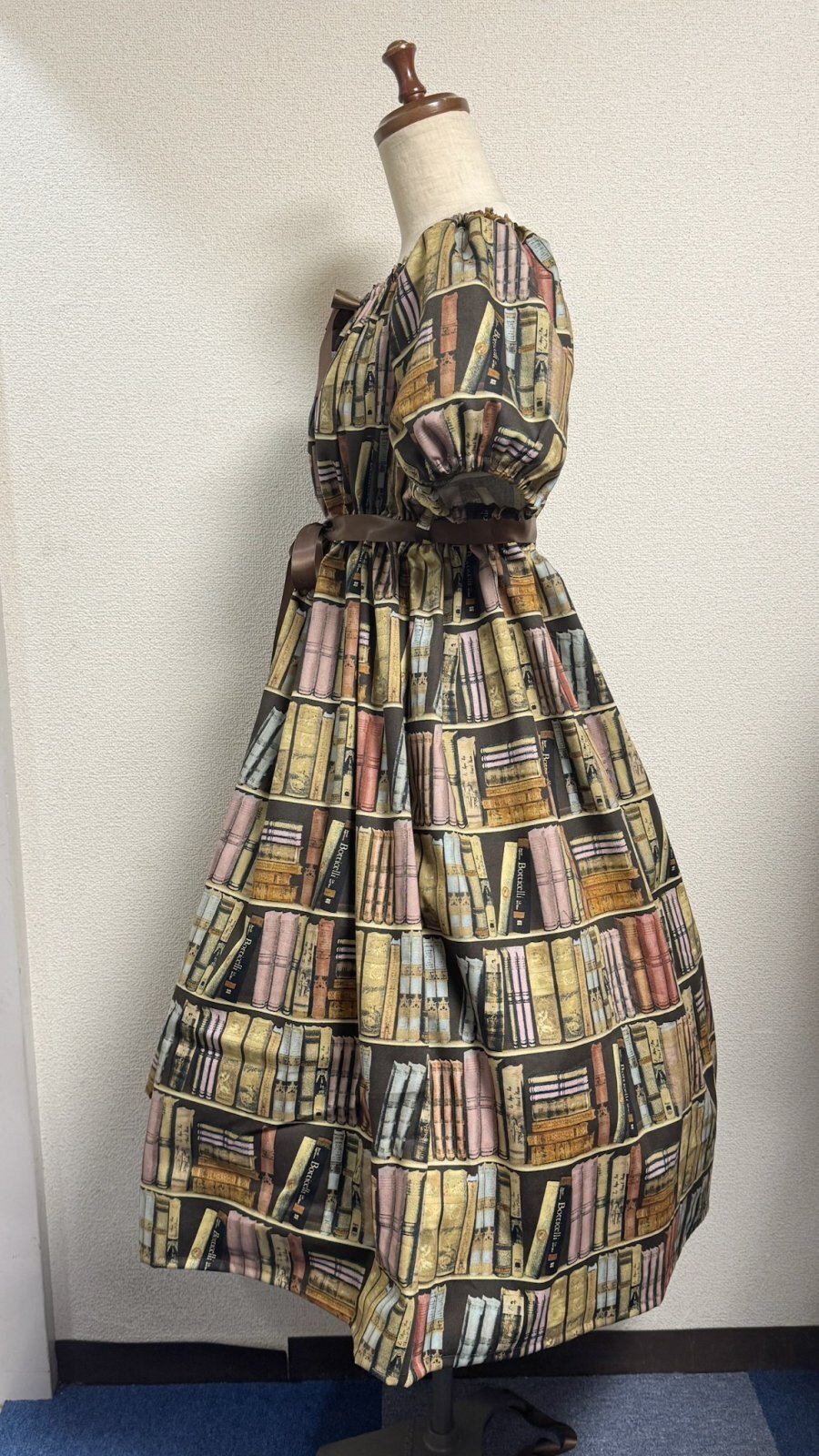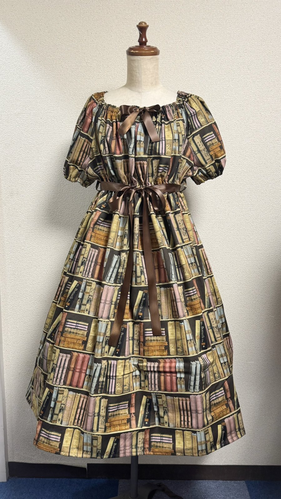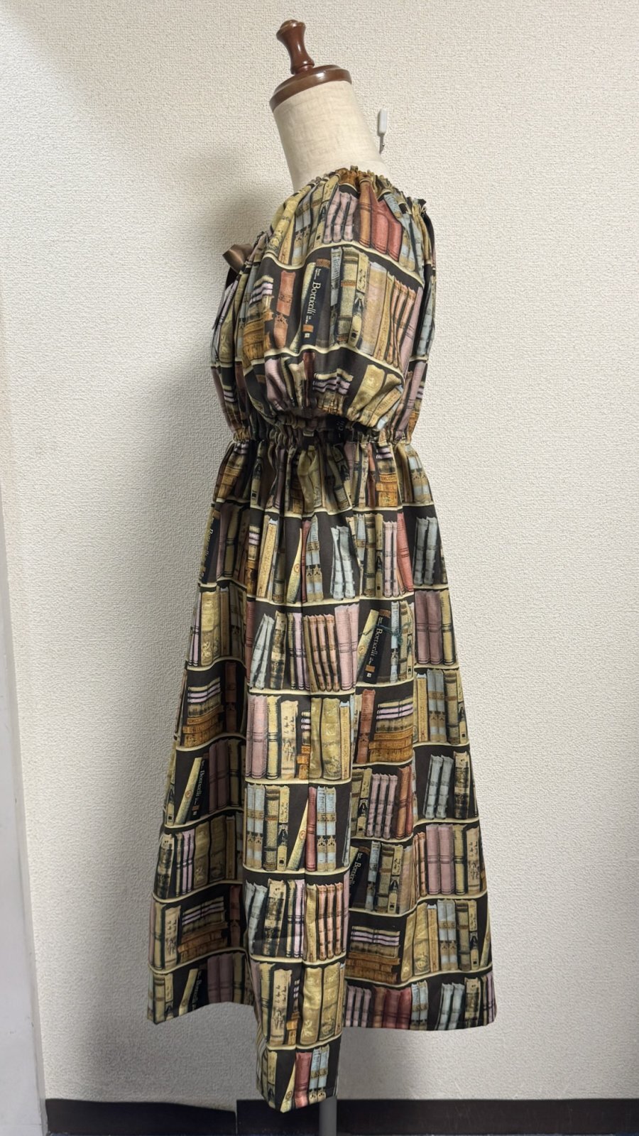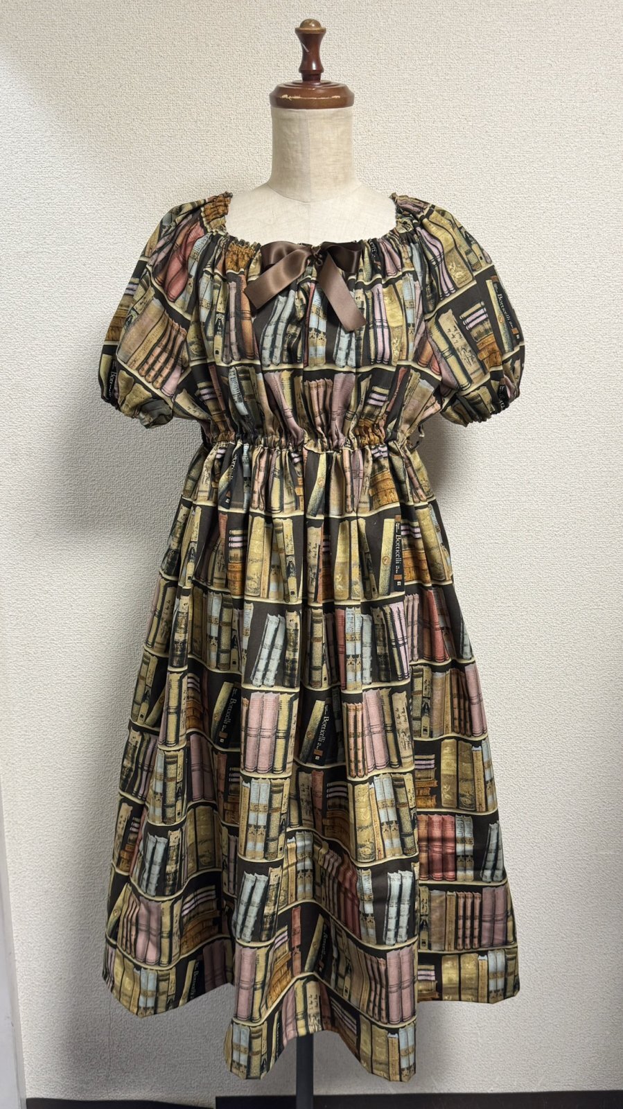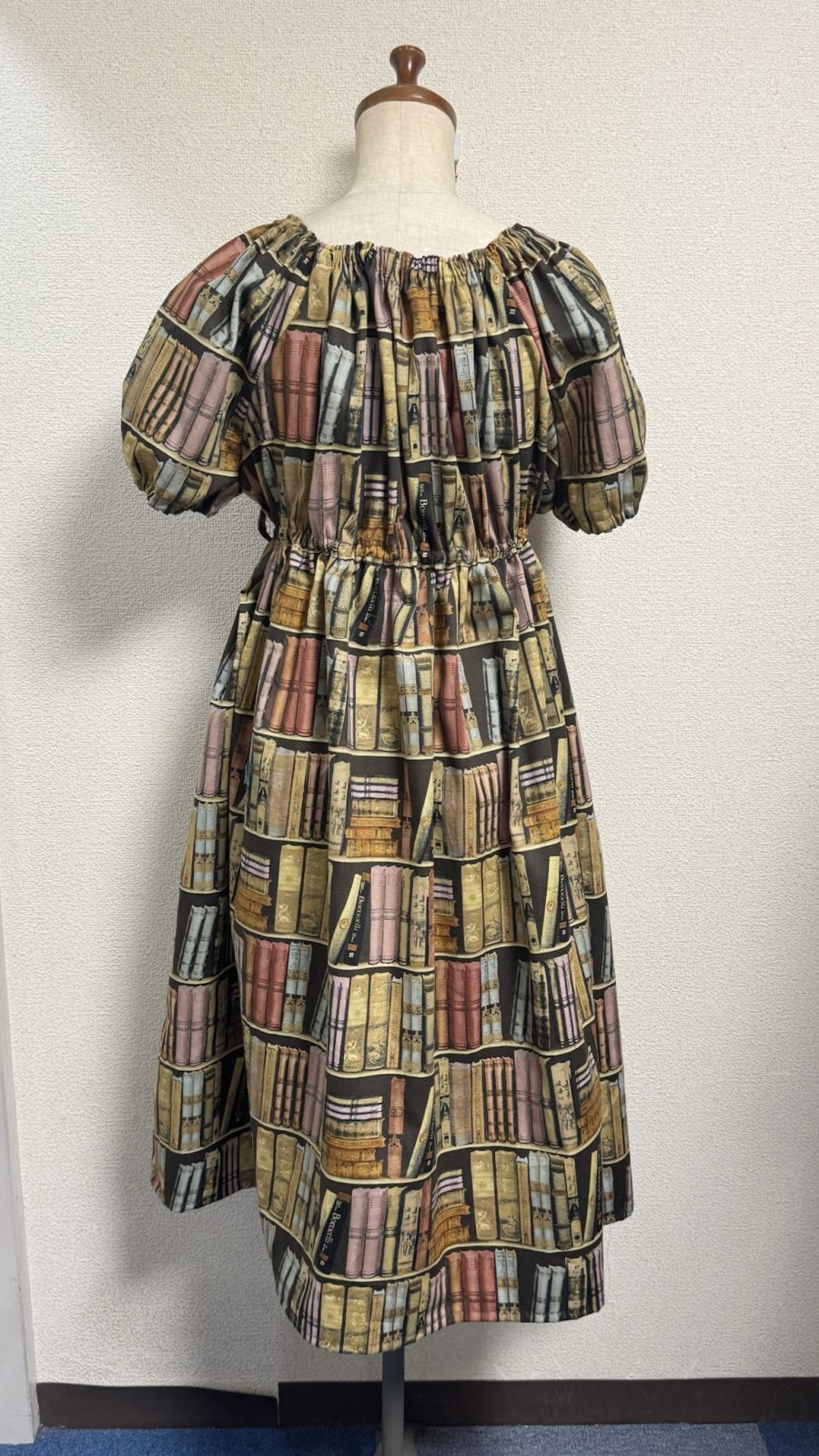 本棚柄デイリーシャーリングワンピース【茶系・レギュラーサイズ】