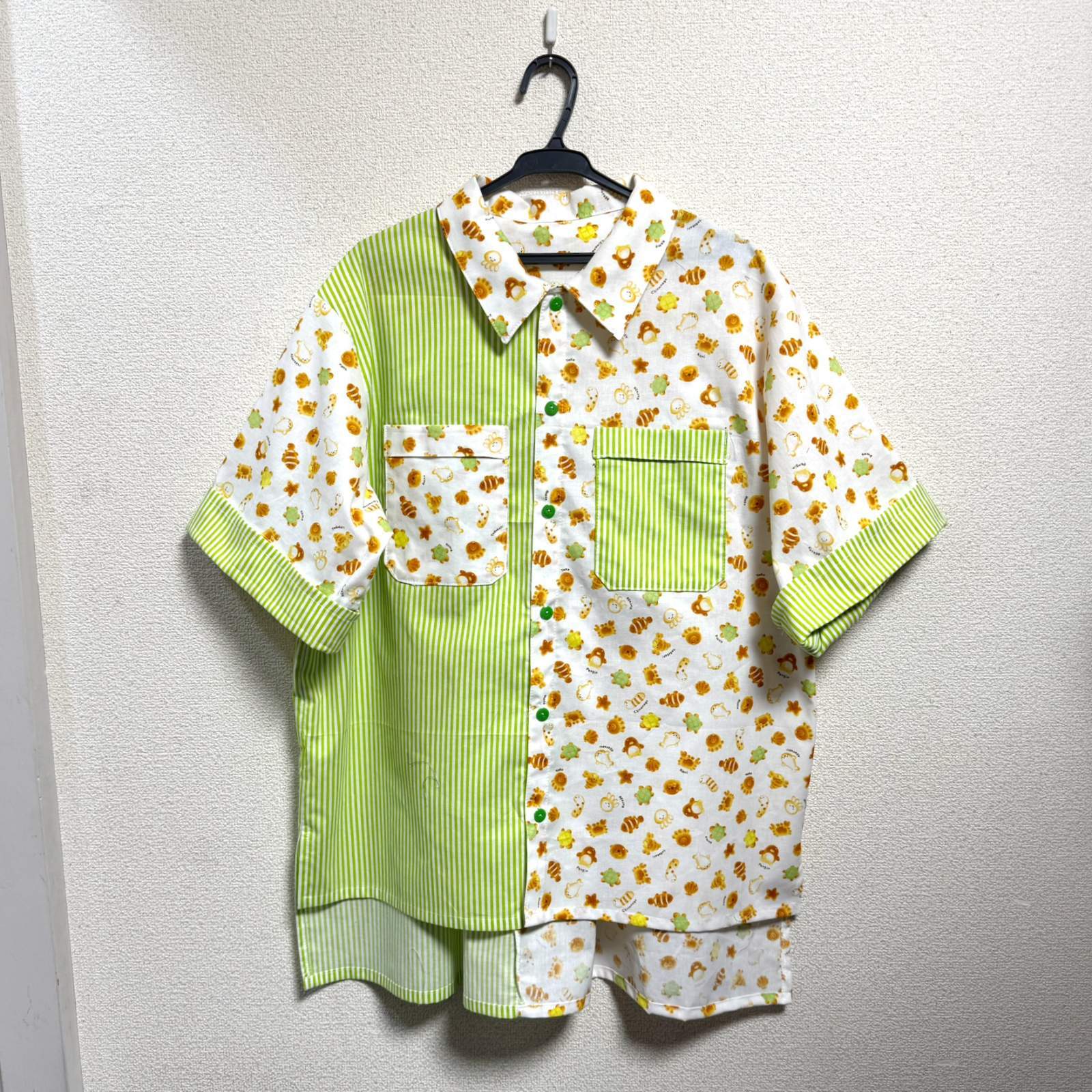 ボーイフレンドワークシャツ【カメロンパン柄オフ白×草色ストライプ】