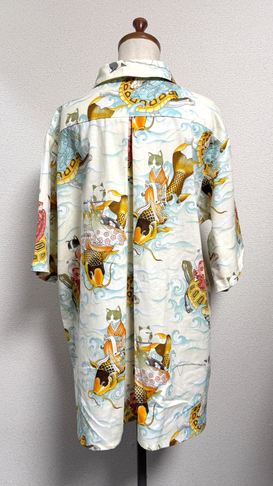 ボーイフレンドワークシャツ【カメ猫柄オフ白系】