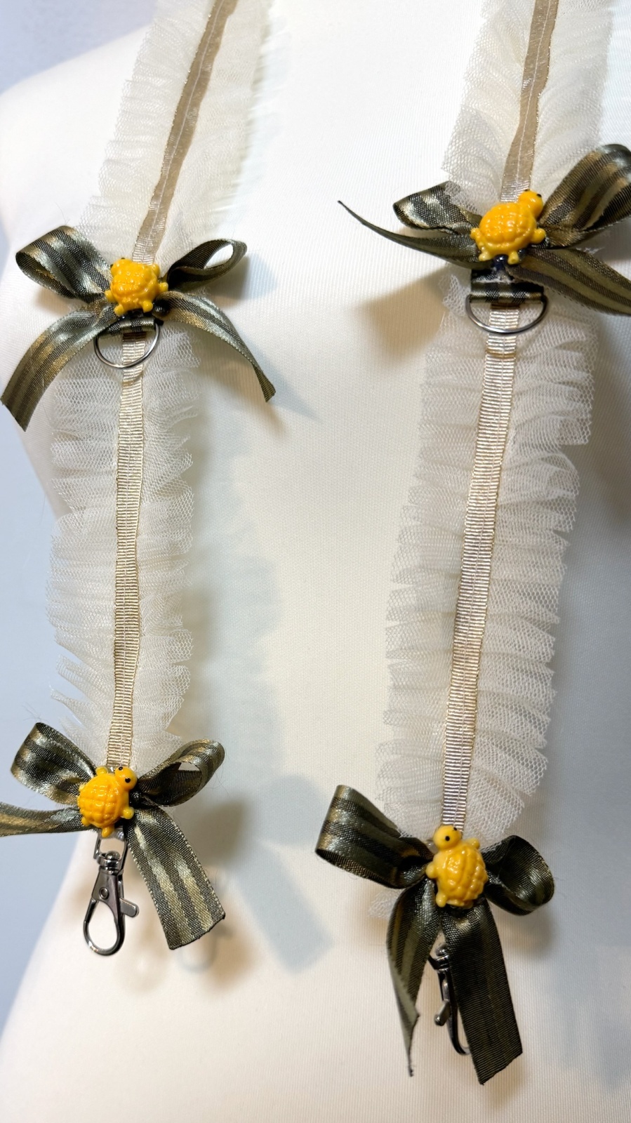 スマホネックストラップ カメ×草色リボン(108cm)