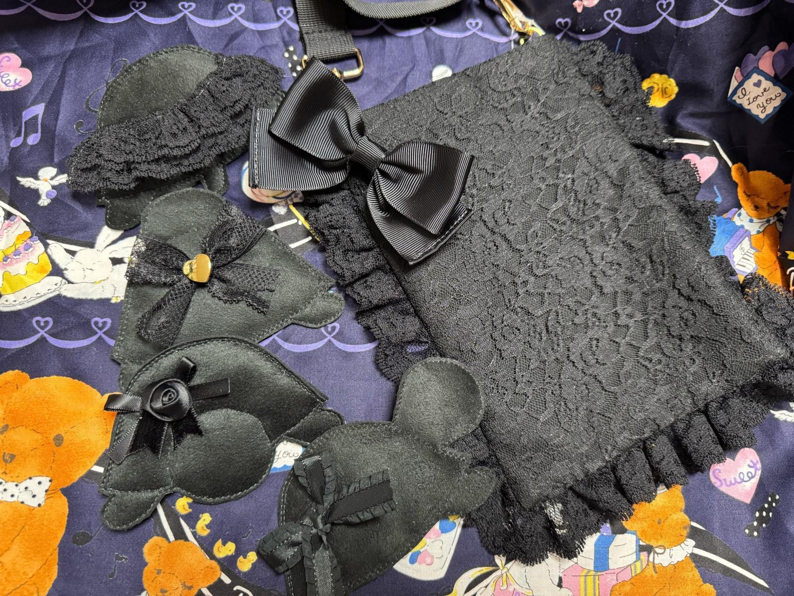 お出かけカメちゃん スマホサコッシュ (黒レース×黒カメちゃん)