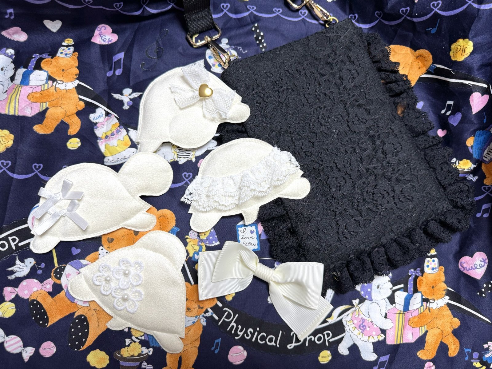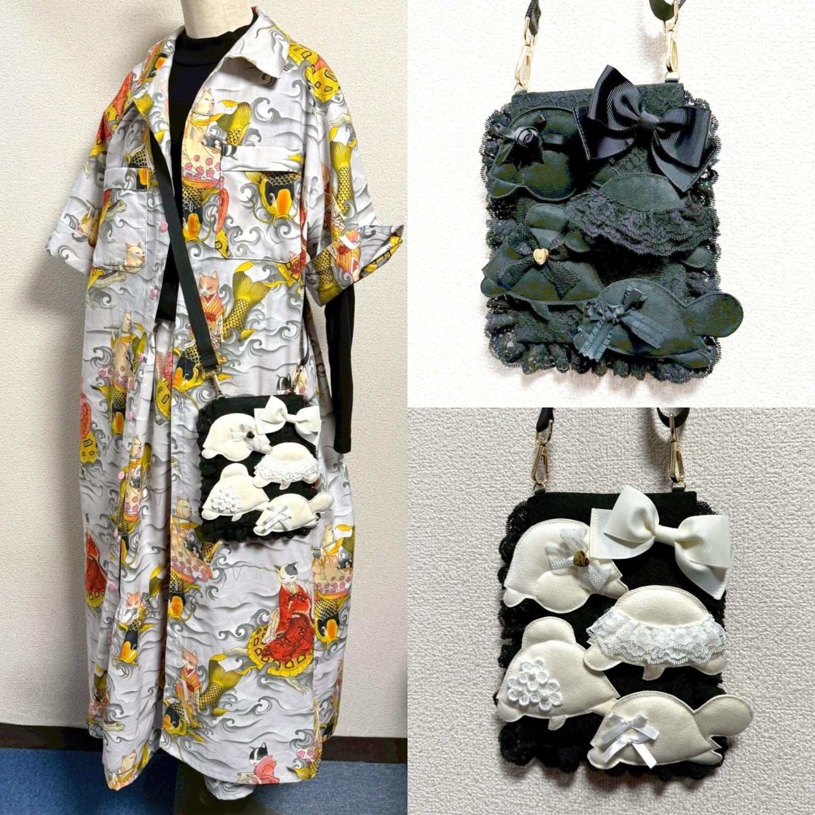 お出かけカメちゃん スマホサコッシュ (黒レース×白カメちゃん)
